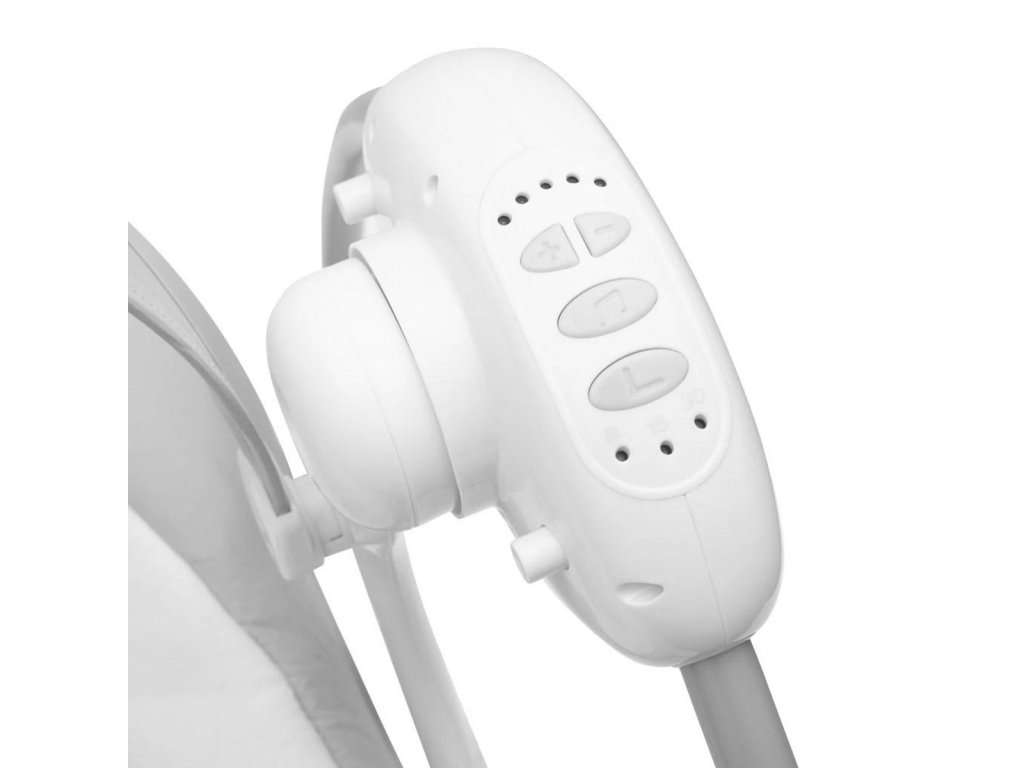 Lehátko je vybaveno časovačem houpání, který umožňuje nastavit délku na 8, 15 nebo 30 minut, případně houpání spustit bez časového omezení. Díky tlačítku pro hudbu lze přepínat mezi 12 melodiemi a regulovat jejich hlasitost.