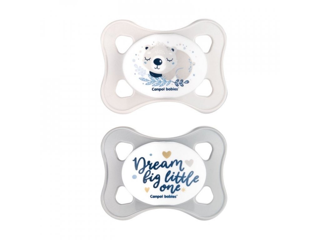 Symetrická silikonová savička je určena pro miminka od narození do dvou měsíců. Byl navržen tak, aby poskytoval pohodlí i zvláště malým miminkům.