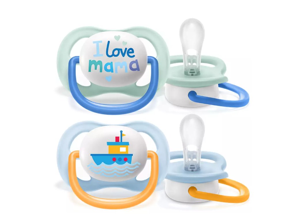 Kolekce Philips Avent Ultra Air má extra velké otvory, které umožňují pokožce dýchat. Světelný kryt zajišťuje maximální proudění vzduchu. K dispozici v různých barvách a designech. Věk 0–6 měsíců.