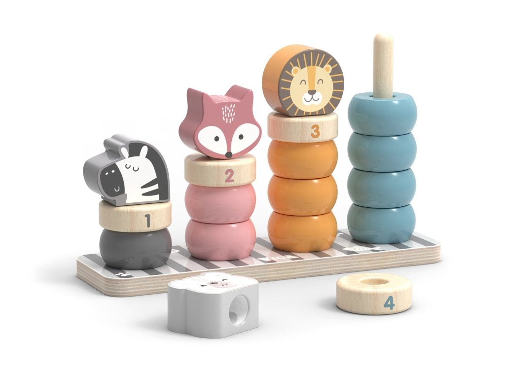 Nabízíme úžasnou sérii hraček LEDNÍ MEDVĚD od VIGA Educational Piramides. Vzdělávací pyramida od Vigy je perfektní dárek pro dítě - který podpoří vzdělání. Učení barev, počítání a motorické koordinace. Hračka má dřevěnou základnu s kolíčky s barevnými kostkami. Úkolem dítěte je uspořádat oválné bloky tak, aby jich na špendlíkech byl odpovídající počet - odpovídající počtu popsanému na jednom z nich. Každý sloupek je barevný v souladu s bloky, což vašemu dítěti usnadní jejich úpravu. Zábavu navíc zatraktivní kostky ve tvaru zvířátek: zebra, liška, lev nebo medvídek, vše barevně ladící. Každá hromádka kostek umístěná na dřevěných kůlech má odpovídající číslo: 1, 2, 3, 4.
