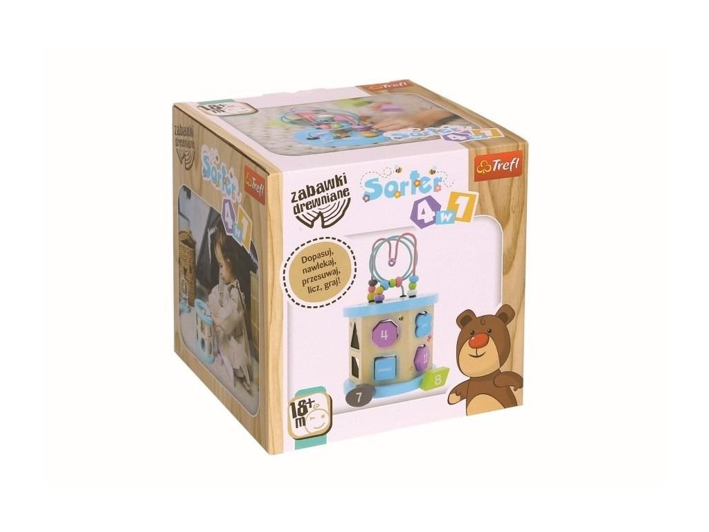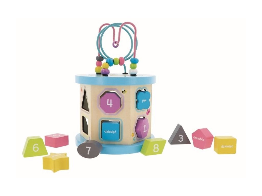 Multifunkční všeobecná rozvojová hračka pro učení tvarů, barev a čísel. Sorter zapojí dítě do učení hrou – perfektní řešení pro děti od 18 měsíců věku. Přiřazování tvarů k dírkám, pohyb korálků po dráze a navlékání špalíků na provázek podporují rozvoj manipulačních schopností malých ručiček. Bloky jsou potištěny na obou stranách číslem na jedné straně a odpovídajícím slovním zápisem na straně druhé. Hračka posiluje koordinaci oko-ruka dítěte a zároveň rozvíjí schopnost logického myšlení a soustředění. Po dokončení učení je čas hrát. Otočte třídičku a zahrajte si jednoduchou stolní hru s rodinou nebo přáteli. Všechny materiály použité k výrobě hračky mají schválení a byly natřeny netoxickými barvami.
