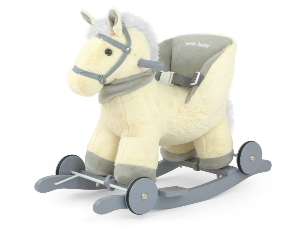 Měkký, hebký plyšový potah je příjemný na dotek a láká dítě k mazlení i hraní. Koník je vybaven vyprofilovaným sedátkem ve tvaru křesílka s bezpečnostními pásy, které zajišťují stabilní a pohodlnou polohu dítěte během houpání.