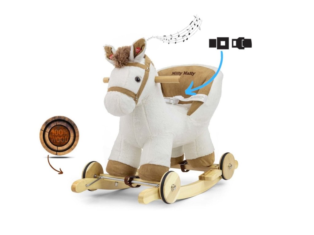 Roztomilý houpací koník Milly Mally Polly White 2v1 byl navržen pro nejmenší děti, pro které jsou klasické houpací hračky příliš velké. Díky kompaktním rozměrům, měkkému sedátku a bezpečné konstrukci je ideální volbou již od 12 měsíců věku.