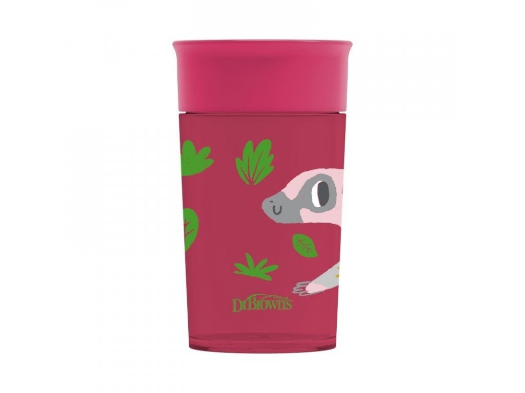 Šálek 360 ° umožňuje vašemu dítěti pít z jakéhokoli okraje bez rozlití, jeho design vypadá jako šálek a průhledné boky vám umožní vidět, kdy je čas doplnit. Kelímek má průhledný silikonový ventil, který zabraňuje rozlití, přičemž zajišťuje snadné proudění tekutiny při pití - ventil pouze aktivuje ústa dítěte, takže se nebojí rozlití, když dítě nepije. Když je vaše dítě připravené a naučí se pít ze sklenice, vyjměte ventil a vyměňte hrnek za skutečný hrnek. Šálek je dodáván s víčkem, které udržuje ventil čistý a usnadňuje cestování, a jednodílný design dělá čištění a montáž hračkou! Hrnek lze mýt v myčce na horní polici a sterilizovat. Je určen pro děti starší 9 měsíců.