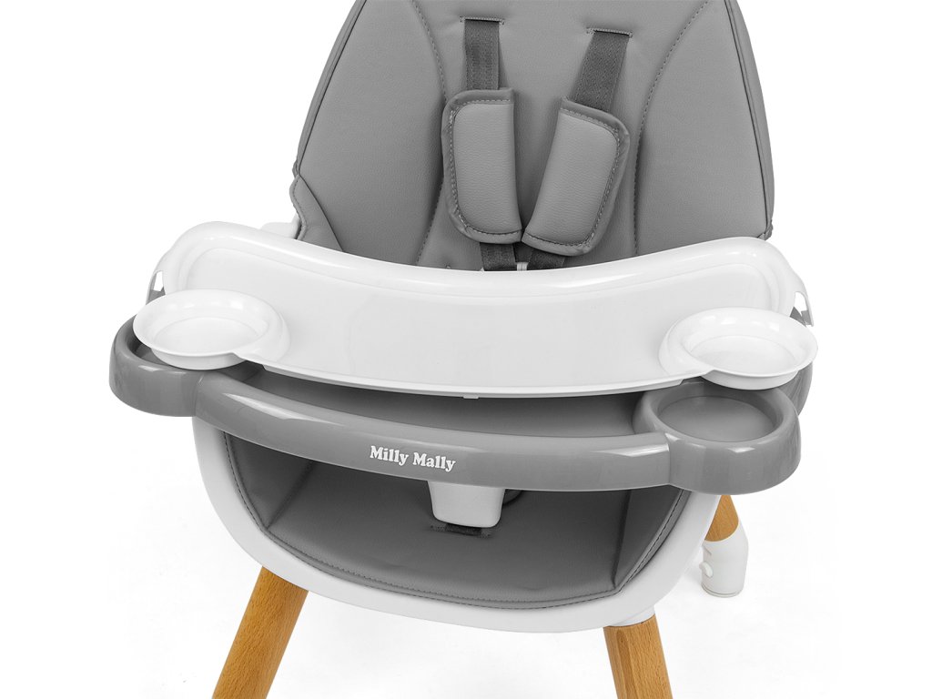 5bodové bezpečnostní pásy se širokými a měkkými ramenními kryty chrání dítě před oděrkami. Čalounění židle Malmo je vyrobeno z ekokůže a je odolné vůči nečistotám a snadno se čistí. Tác má prohlubeň, která zabraňuje sklouznutí předmětů na něm umístěných.
