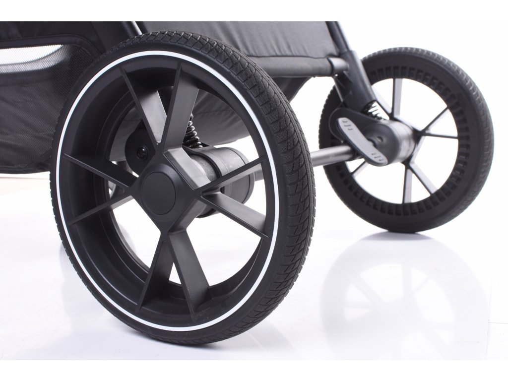 Velká kola s gumovým povrchem jsou zcela bezúdržbová, mají výbornou přilnavost a snadno se s nimi manévruje. Přední kola jsou otočná o 360° a lze je zablokovat pro stabilní jízdu.