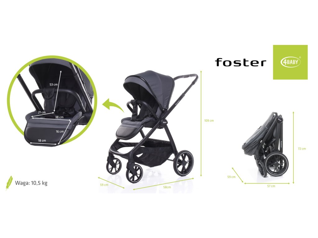 ✅ Foster je kočárek, který spojuje moderní design, snadné ovládání, vysokou funkčnost a maximální bezpečí. Je perfektní volbou pro aktivní rodiče, kteří chtějí, aby se jejich dítě cítilo pohodlně a v bezpečí při každé procházce – ve městě i mimo něj.