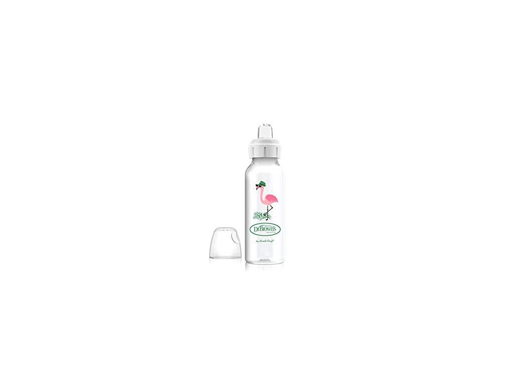 Kojenecká láhev se silikonovým netekoucím pítkem 250 ml Plameňák transparentní