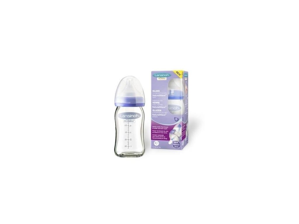 Nová Lansinoh Skleněná láhev se snadno čistí a sterilizuje a je 100% ekologická. Savička NaturalWave® byla navržena speciálně pro kojené děti.