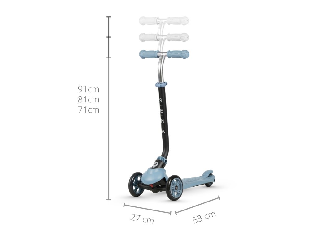 Když se malý průzkumník vydá objevovat svět... Koloběžka SEMA se přizpůsobí věku a potřebám dítěte. Patří do rodiny produktů GROW UP – roste s dítětem. SEMA je perfektní řešení pro aktivní nejmenší, kteří jsou neustále v pohybu. Není to jen koloběžka, je to i ježdění pro děti od tří let, ale bude s dítětem držet krok i v dalších fázích vývoje jako balanční koloběžka. Kolečka z kvalitního materiálu (gumy) zajišťují optimální přilnavost a tichou jízdu. Koloběžka procvičuje motoriku, sílu a svaly nohou a zajišťuje pohybovou koordinaci. Díky tomu se bude dítě správně a rychle vyvíjet. Její nejdůležitější předností je však zábava, kterou dětem poskytuje.