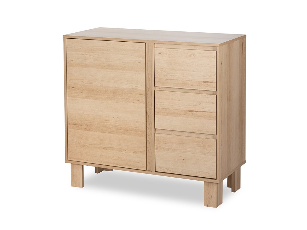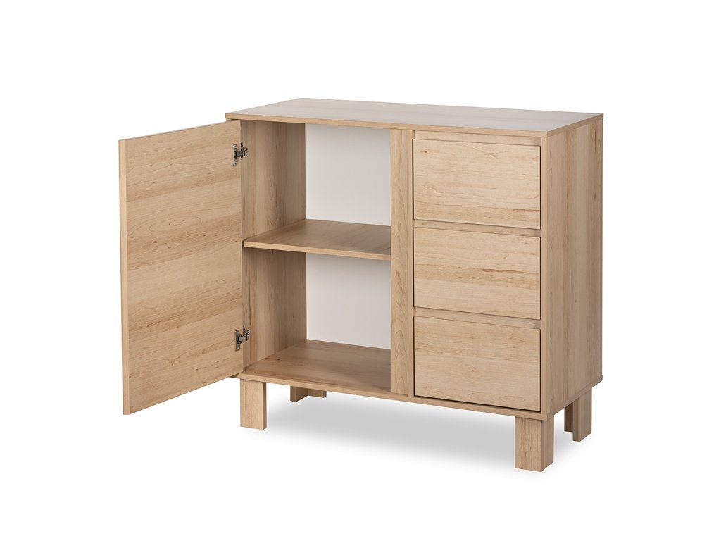 Komoda OLIVIA je ideálním řešením pro rodiče, kteří hledají spojení funkčnosti a estetiky. Její čistě bílý design se hodí do moderních i klasických dětských pokojů a šířka 100 cm z ní činí skutečně prostorný kus nábytku. Tři hluboké zásuvky se otevírají hladce díky kuličkovým pojezdům, zatímco boční skříňka s dvířky ukrývá dvě praktické police – ideální na hračky, oblečení nebo kosmetiku.