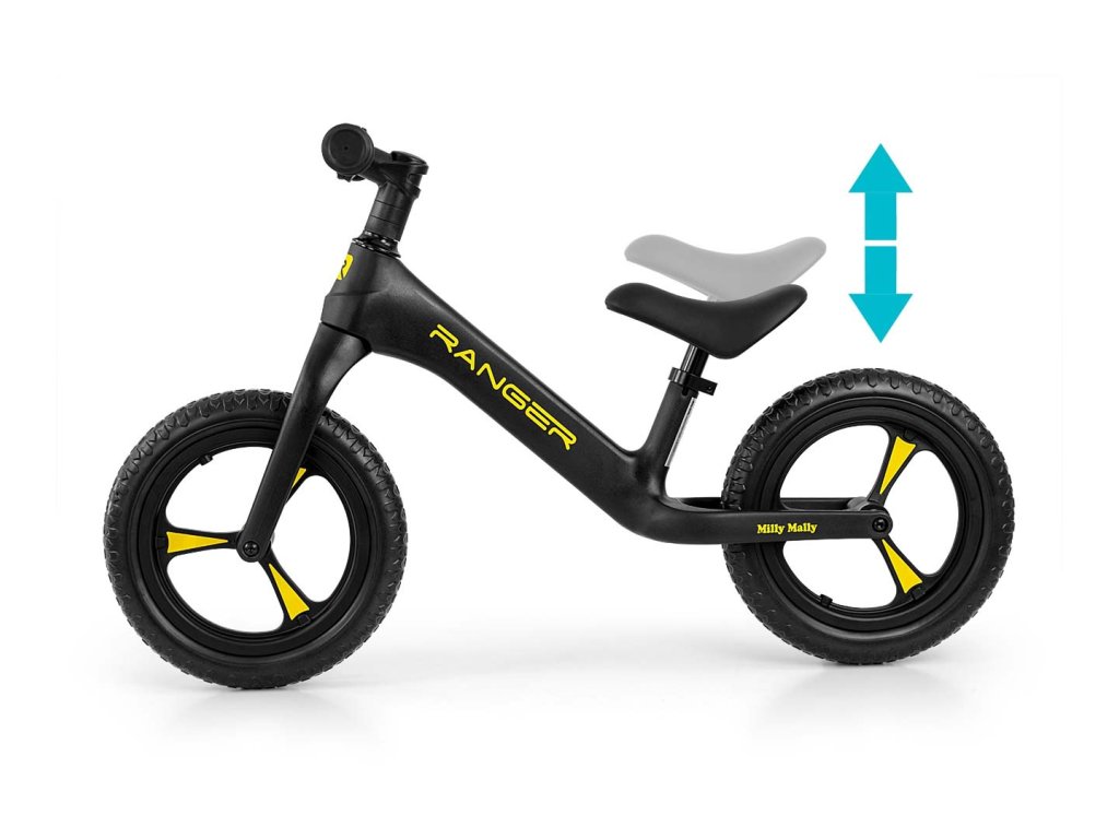 Odolná a vyrobená z nejnovější technologie EVA pěny, 12" kola odolná proti propíchnutí, která není třeba nafukovat, jsou bezúdržbová. Ergonomické, výškově nastavitelné sedlo s měkkou výplní zajišťuje dítěti pohodlí při jízdě a roste s dítětem. Kolo Ranger má řídítka v kuličkových ložiskách a kola v kuličkových ložiskách. Protiskluzové rukojeti z měkké gumy zajišťují pevné uchopení a pohodlné vedení.