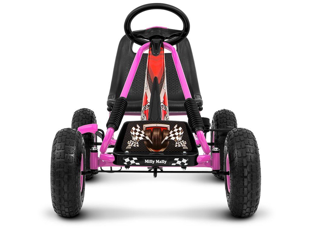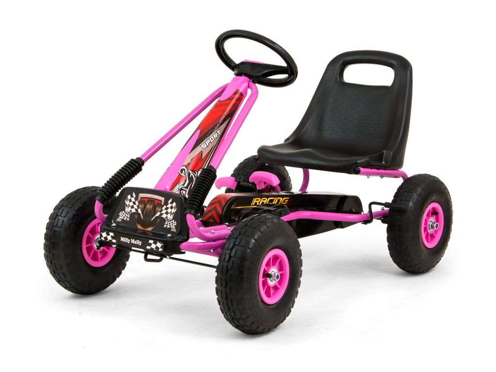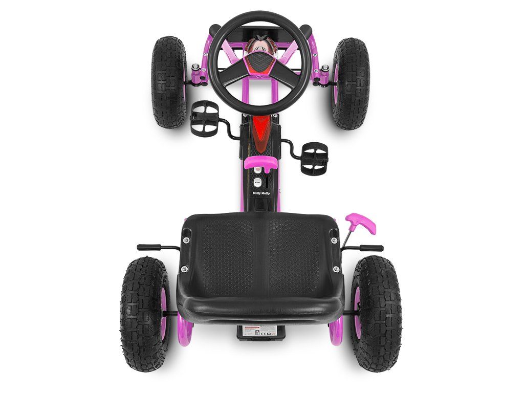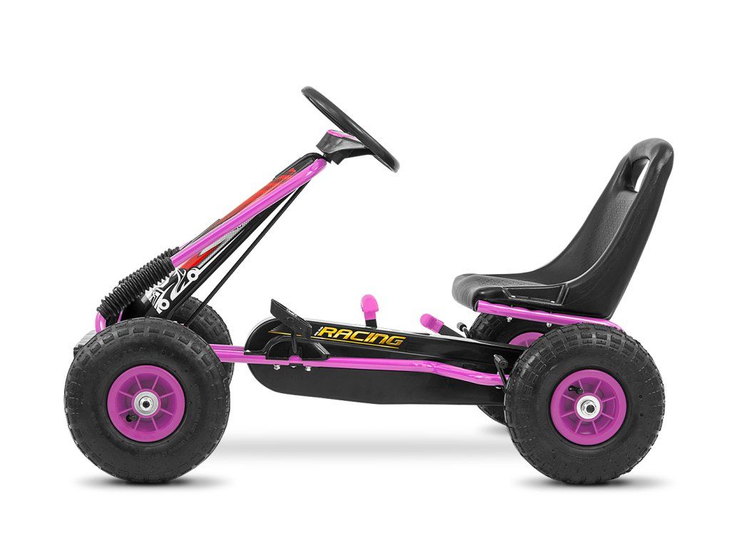 Kovový rám s plastovými kryty zajišťuje pevnost a lehkost zároveň. Díky dvěma polohám sedadla se motokára přizpůsobí výšce dítěte a umožní jízdu menším i větším dětem. Sportovní volant a nafukovací kola s ložisky zaručí pohodlnou jízdu na jakémkoli povrchu.
