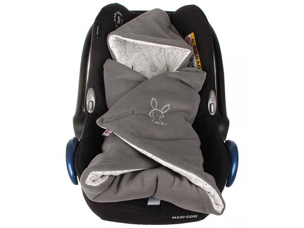 Zateplená zavinovačka v provedení fleece - vatelín - bavlna. Podšívka je z bavlny s motivem zajíčků, vnější strana z fleecu a výplň z vatelínu. Rozměr je cca 75 x 75 cm, praní na 30 °C. Zavinovačku je možné používat i do autosedačky s tříbodovým zapínáním. Česká výroba.